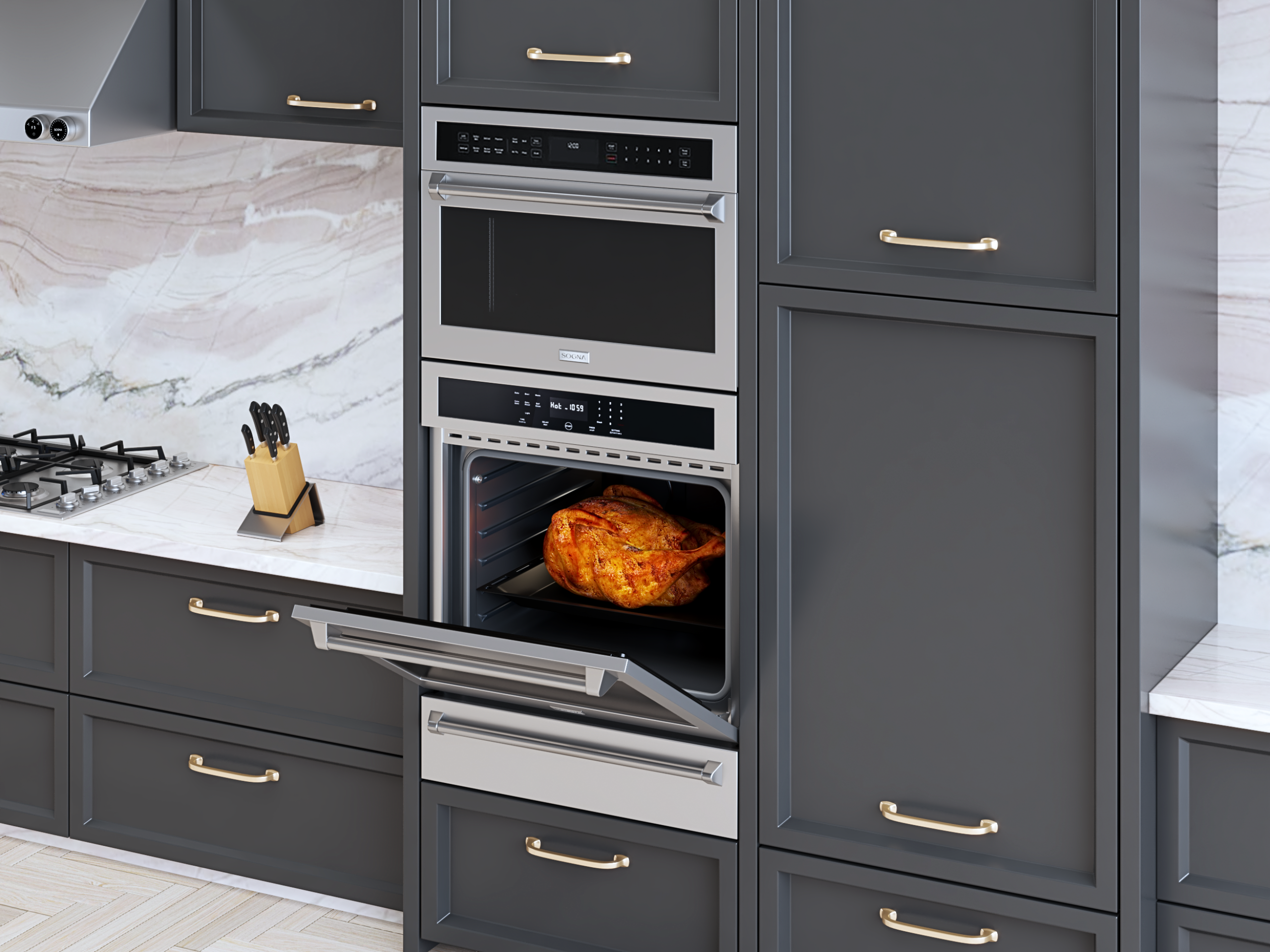 Potência e discrição coexistem em perfeita harmonia. O Forno elétrico SOGNA Sense 75cm trabalha com eficiência quase imperceptível, mantendo a serenidade de sua cozinha, onde a inspiração é livre para fluir.